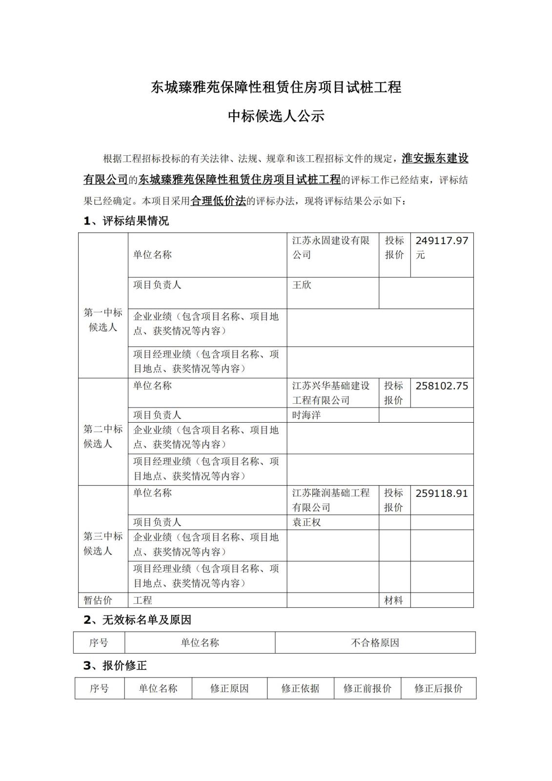 東城臻雅苑保障性租賃住房項(xiàng)目試樁工程中標(biāo)候選人公示